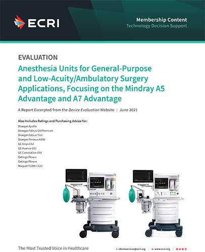 ECRI Evaluation of the A5 and A7 Advantage Anesthesia Delivery Systems