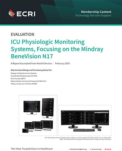 This content, from ECRI’s Health Devices System, is provided for informational purposes only. The content contained herein is protected by copyright laws and may not – in whole, in part, or by reference – be used in advertising or for promotional materials.