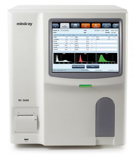 The BC-3600 Hematology analyzer features closed tube sampling via a single push button. A built-in large 10.4 inch color touchscreen allows maximum visibility. Hemoglobin analysis is performed using cyanide-free reagent. The analyzer processes up to 60 samples per hour and stores up to 40,000 results with histograms. The barcode reader and optional LIS connectivity enable seamless sample data transmission. Nearly all scheduled maintenance procedures are automated by touch buttons. The intuitive software enhances workflow efficiency and provides operators with a pleasant user experience.