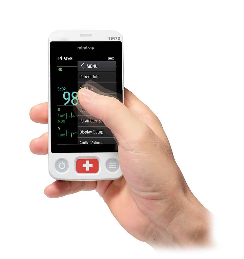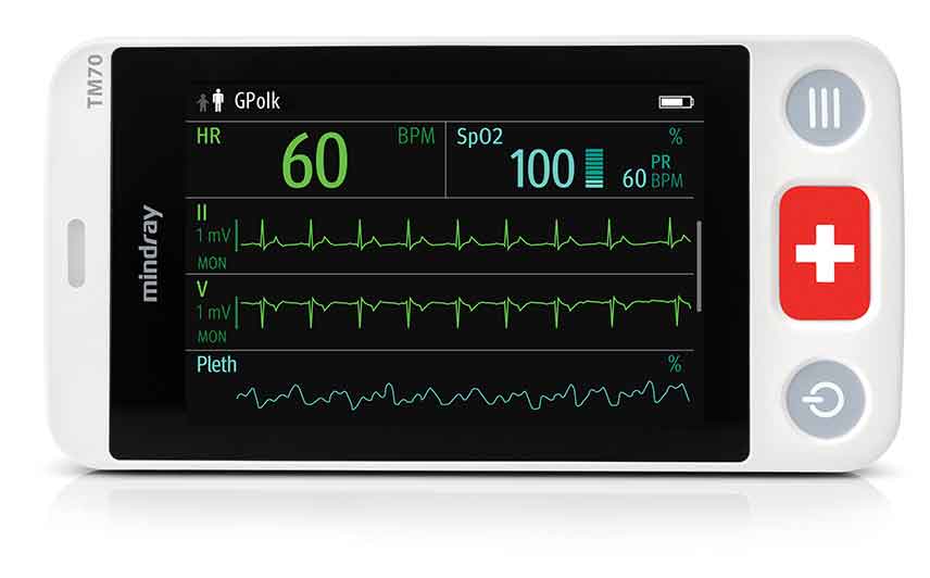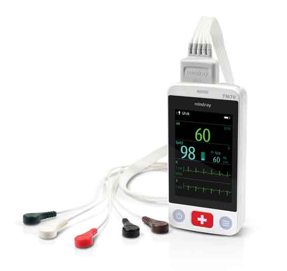 Operating on the protected WMTS band, TM70 provides on-board arrhythmia detection as well as technical and physiological alarms enabling constant surveillance, even outside the coverage area. With critical information such as events, trends and waveforms now accessible on TM70 right at the patient, clinical workflow is more streamlined and time-to-treatment may be reduced.