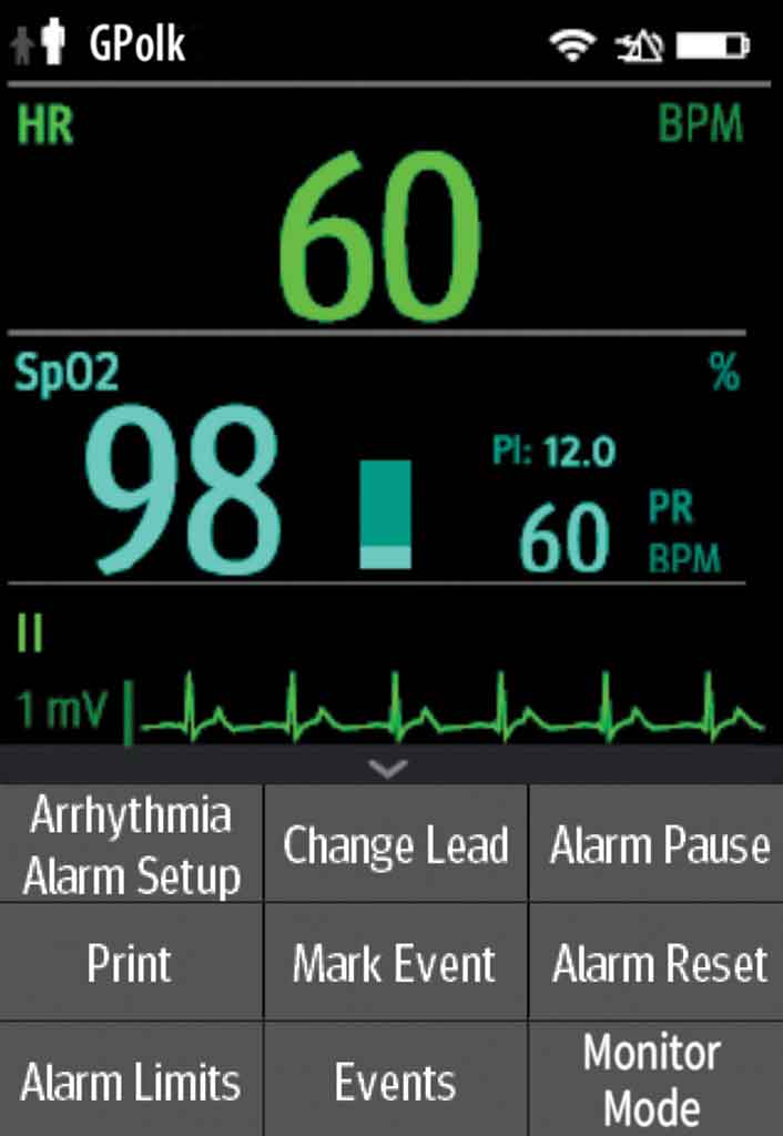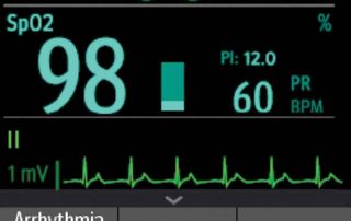 - Clear, easy to read HR, respiration, and SpO2 numerics