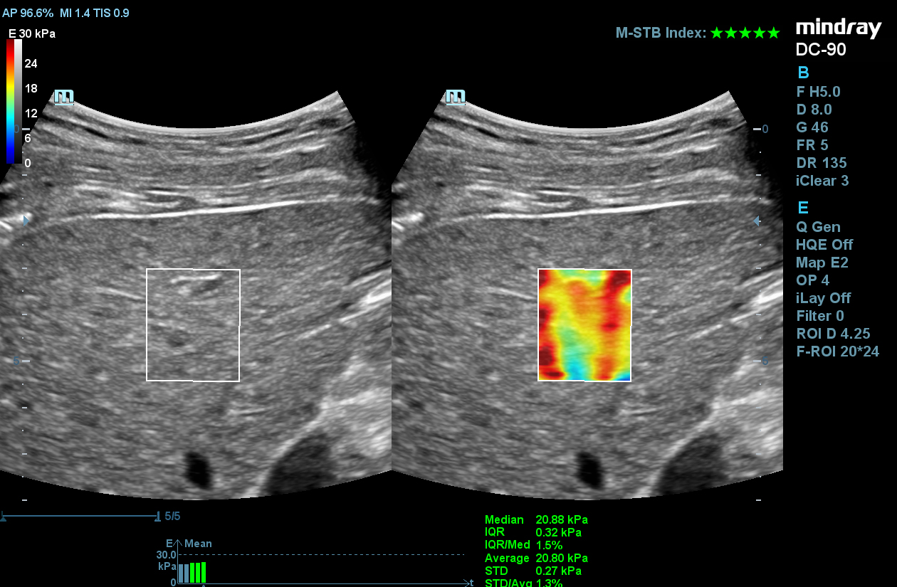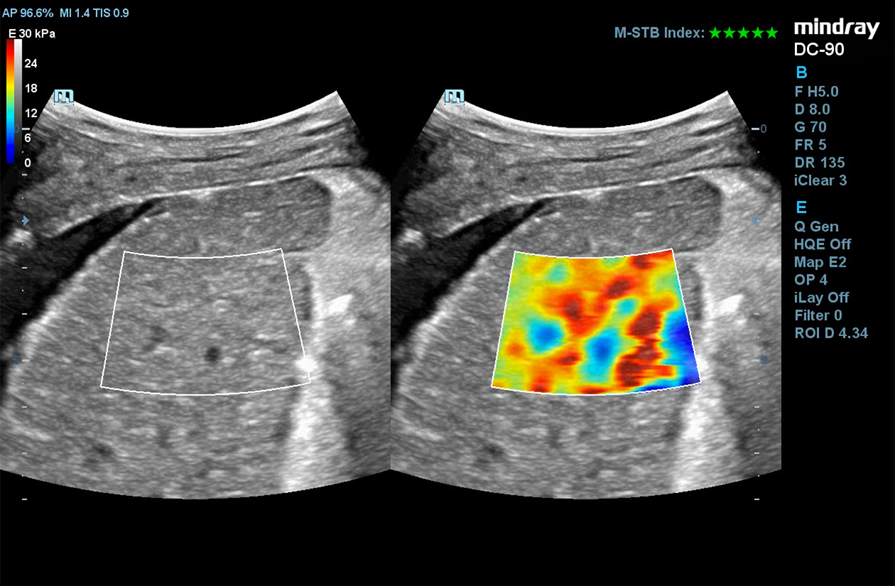 Mindray’s Sound Touch Elastography (STE) utilizes exclusive Ultra-Wide Beam Tracking technology to provide comprehensive quantification metrics and dynamic visual display of tissue stiffness for enhanced diagnostic confidence. Using real-time and rapid data acquisition from a wide beam single pulse, STE is designed to reduce noise caused by motion artifact for improved efficiency and accuracy of measurements.