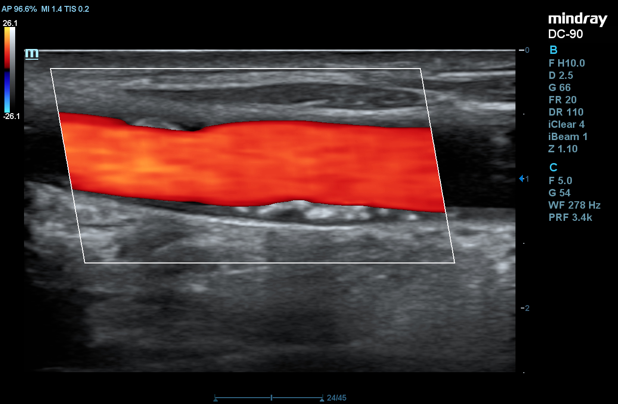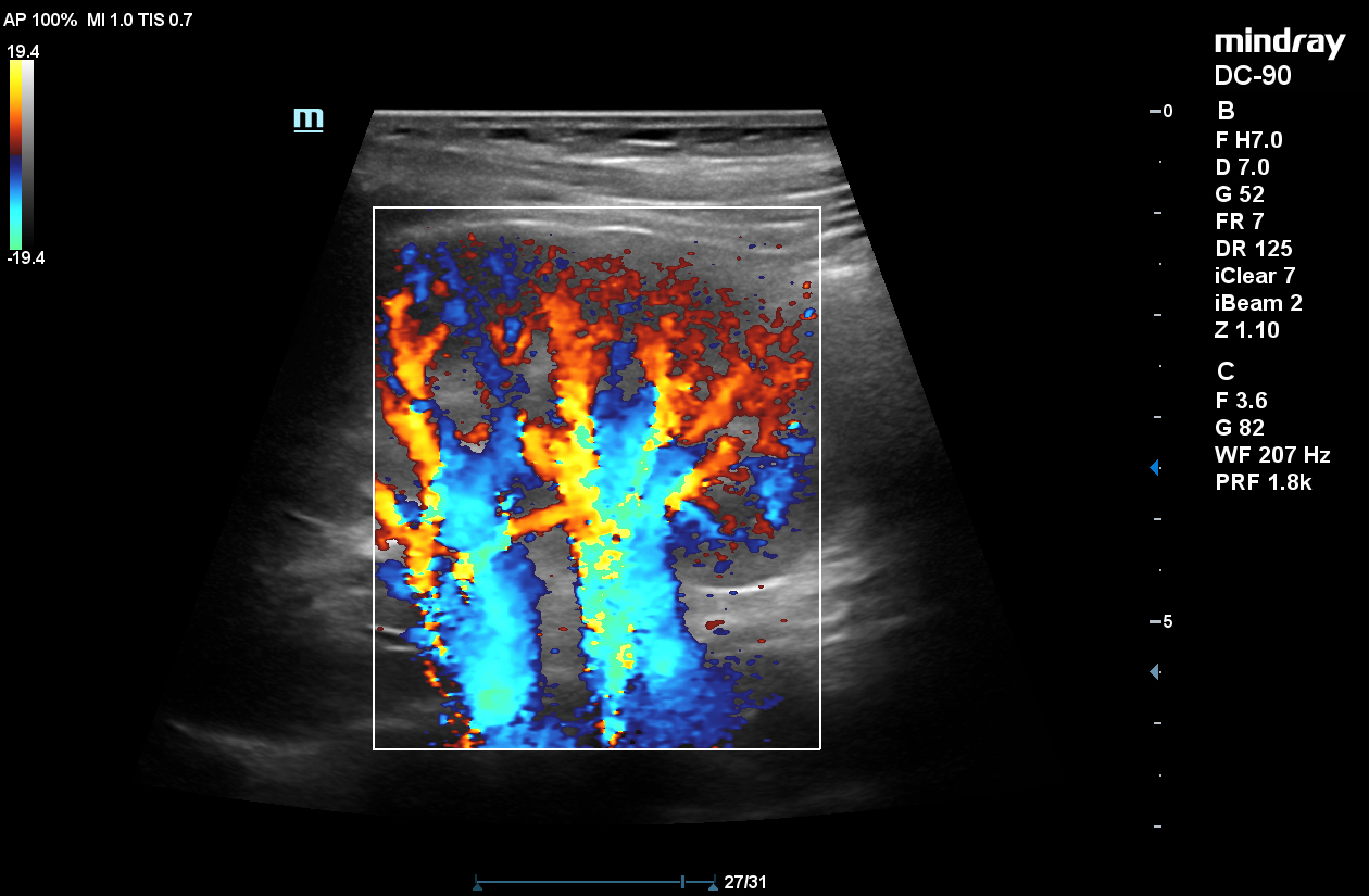 Mindray’s second generation Ultra-Wideband Non-Linear (UWN+) contrast enhanced ultrasound (CEUS) imaging uses both harmonic and fundamental signals to improve contrast and temporal resolution during CEUS studies. X-insight, the technology that powers the DC-90, allows for a longer duration of perfusion in the tissues.