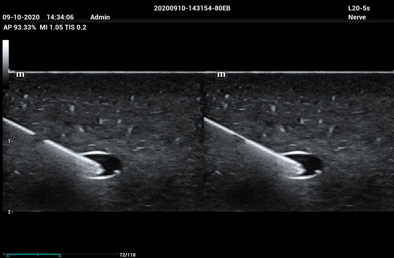 Our second-generation iNeedle+ technology automatically detects needle angle and improves visibility on both linear and convex transducers during interventional procedures.