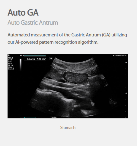 Automated measurement of the Gastric Antrum (GA) utilizing our AI-powered pattern recognition algorithm.