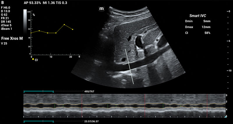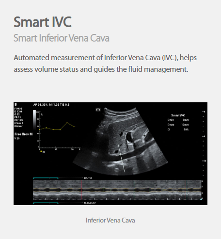 Automated measurement of Inferior Vena Cava (IVC), helps assess volume status and guides the fluid management.