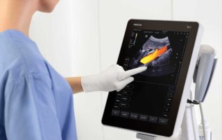 The TE7 System incorporates an intuitive touchscreen and focused point-of-care protocols designed to standardize and reduce exam times. The System’s second generation iVocal voice recognition technology and new programmable-button transducer technology allows for a hands-free scanning experience, ideal for sterile environments.