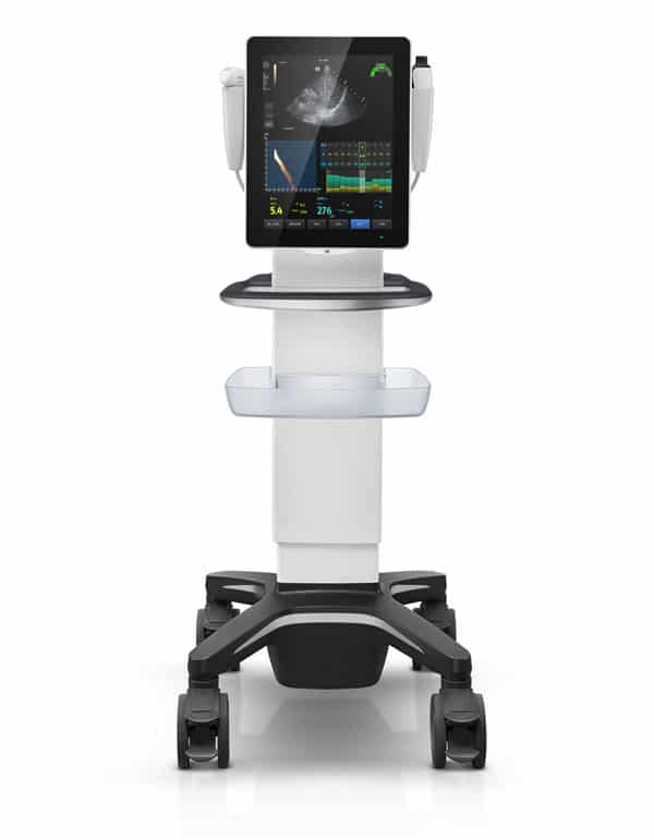 - Offers a flexible storage design with cable management, transducer or gel holders, and a large storage basket