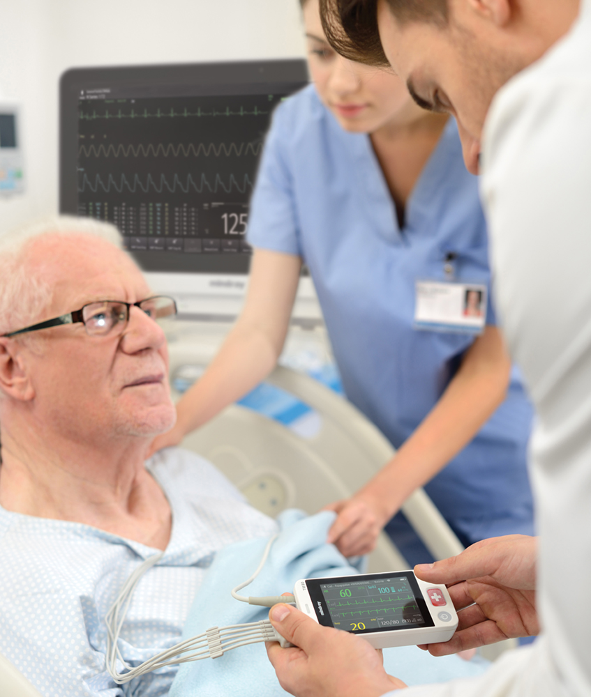 Managing the contradiction between delivering improved patient outcomes, elevating staff productivity, and operating in a complex cost-constrained environment is paramount for healthcare organizations. The Mindray BeneVision DMS Telemetry Platform was developed to address these challenges, with technology that meaningfully impacts the quality and delivery of care. Display telemeters provide real-time vital signs data patient-side, enabling clinicians to spend more time engaging with their patients. With standard onboard arrhythmia detection and alarms, our telemeters can be deployed as wearable patient monitors, minimizing risk during patient ambulation and transport.