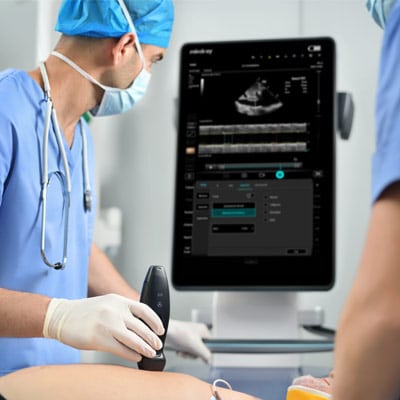 As the industry’s first wireless transducer that connects to a fully-featured Ultrasound system, the TE Air can be used with the TE X Ultrasound System or independently with a mobile device. This versatility helps improve clinicians’ confidence and efficiency at the bedside or on the go outside the hospital setting.